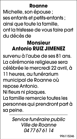 Funérarium Municipal de Roanne de Roanne le mercredi 22 avril à 11 heures
