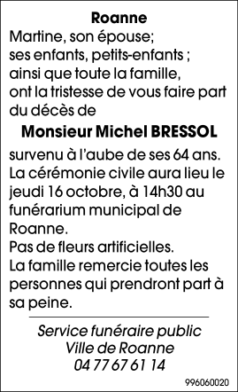 Décédé à Roanne (42300, France) le lundi 13 octobre 2025 à l'âge de 63 ans