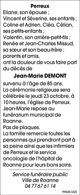 Décédé à Roanne (42300, France) le samedi 18 octobre 2025 à l'âge de 85 ans