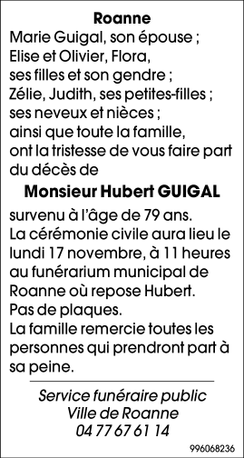 Décédé à Roanne (42300, France) le lundi 10 novembre 2025 à l'âge de 79 ans