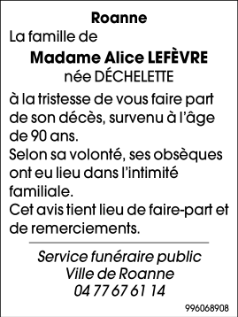 Madame Alice LEFEVRE née DÉCHELETTE