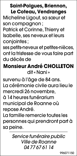 Décédé à Roanne (42300, France) le jeudi 20 novembre 2025 à l'âge de 84 ans