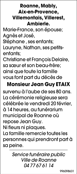 Décédé à Roanne (42300, France) le dimanche 15 février 2026 à l'âge de 79 ans