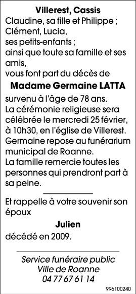 Veuve de Monsieur LATTA JULIEN