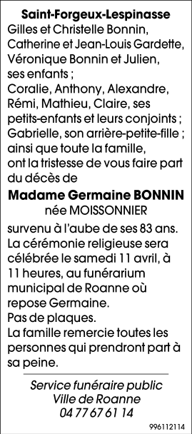 Décédée à Roanne (42300, France) le samedi 4 avril 2026 à l'âge de 82 ans