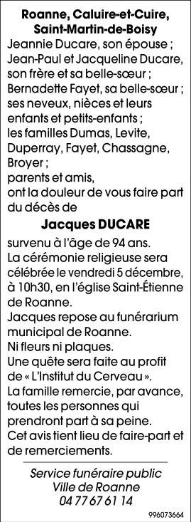Décédé à Roanne (42300, France) le samedi 29 novembre 2025 à l'âge de 94 ans
