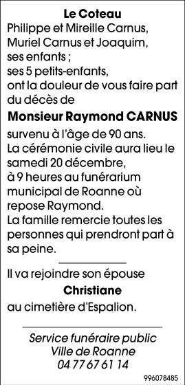 Décédé à Roanne (42300, France) le lundi 15 décembre 2025 à l'âge de 90 ans